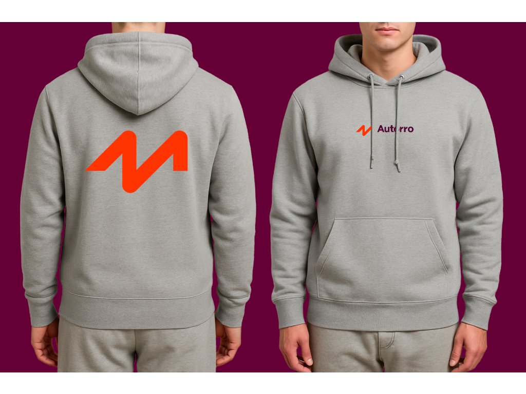 Mikina s Autorro logom na chrbte a logom s nápisom na prsiach. Dostupná v oranžovej, čiernej a sivej farbe.