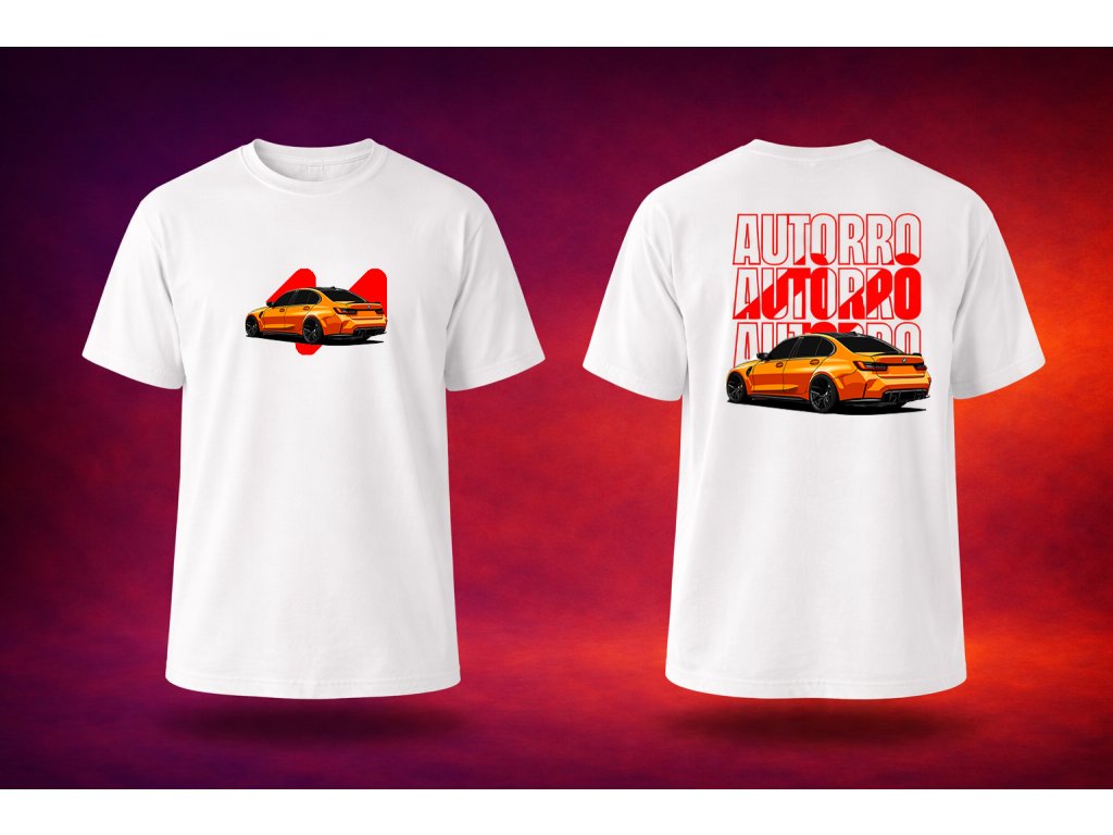 Tričko s Autorro logom, nápisom a BMW M3 na chrbte a logom s BMW M3 na prsiach. Dostupné v bielej a oranžovej farbe.
